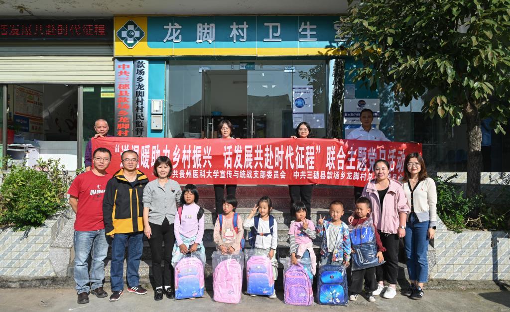 陈颖代表宣传与统战党支部向三穗县款场乡龙脚村党总支赠送理论学习书籍、贵医文化读本。