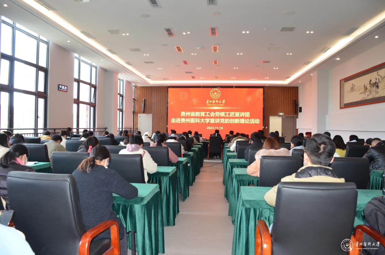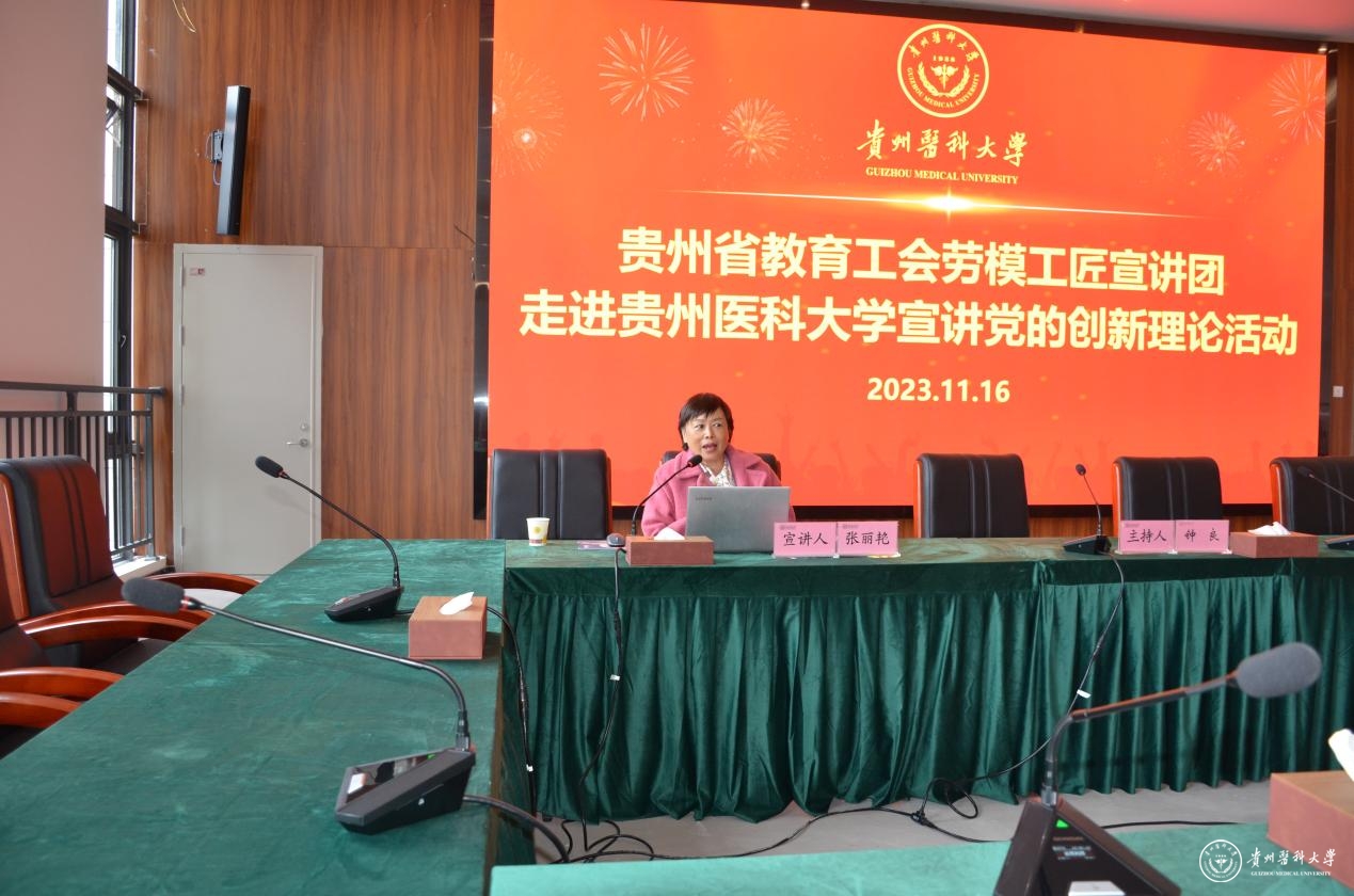 11月16日,贵州省教育工会“劳模工匠宣讲团走进beat365唯一官方网站宣讲党的创新理论”活动在beat365云漫湖校区举行。贵州省教育工会“劳模工匠宣讲团”成员、“全国五一劳动奖章”“全国五一巾帼标兵”“贵州省脱贫攻坚优秀党员”“贵州省最美科技工作者”和贵州省农村产业革命中药材产业“先进个人”获得者贵州省中医药大学张丽艳教授作宣讲,校工会全体工作人员和相关教职员工参加。