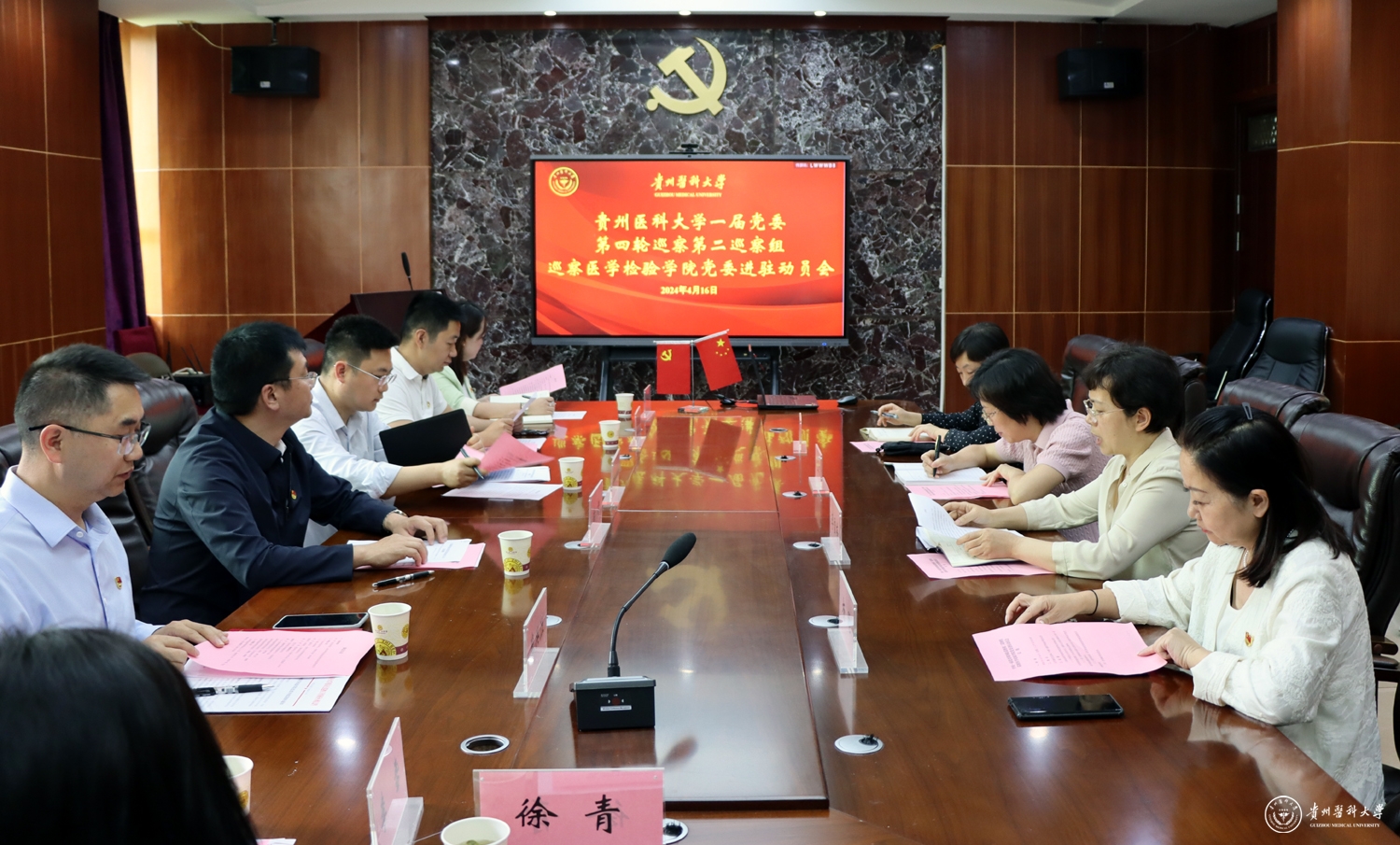 第二巡察组副组长朱俊伟及巡察组全体成员,医学检验学院党委领导班子成员参加会议,医学检验学院各党支部、各科室、各教研室等有关负责同志列席会议。