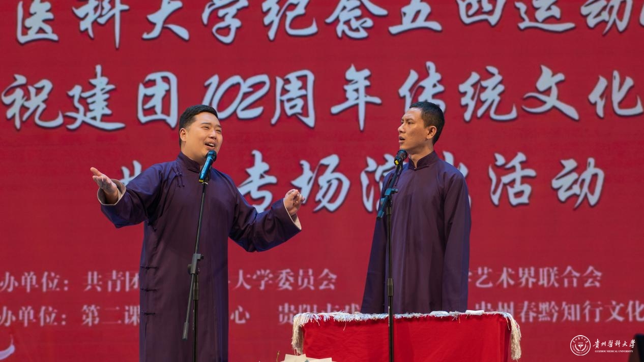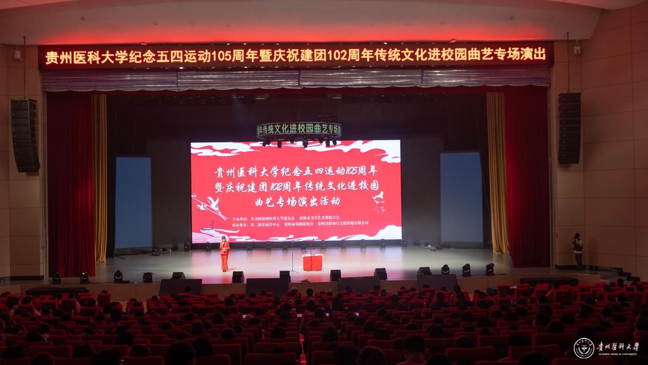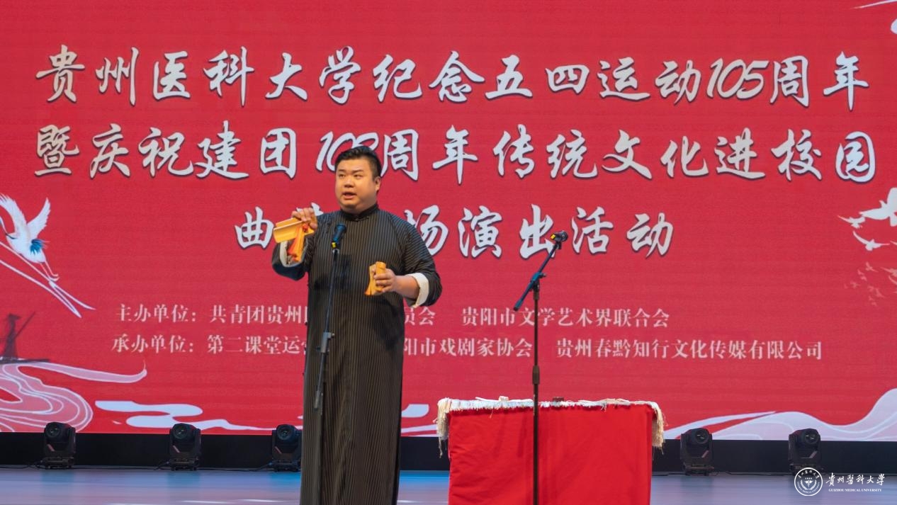 5月15日,beat365唯一官方网站纪念五四运动105周年暨庆祝建团102周年传统文化进校园曲艺专场演出活动在云漫湖校区大礼堂举办。本次活动由校团委、贵阳市文联主办,第二课堂运营中心、贵阳市戏剧家协会、贵州春黔社承办。贵州省曲艺家协会副主席、贵阳市戏剧家协会副主席、秘书长陈欣,beat365党委委员、党委宣传部部长、党委统战部部长陈颖,校团委书记王妤煜到演出活动现场观看了演出。