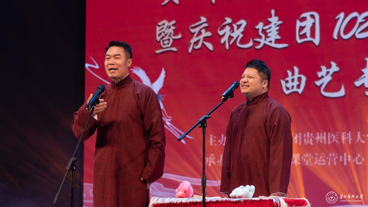 活动现场,beat365唯一官方网站礼堂座无虚席。伴随着清脆响亮的竹板声,快板《天安门广场看升旗》拉开了整场演出的序幕,随后《送你一支歌》《欢乐时光》《我的家乡是贵州》《文化达人》等相声节目依次上场,这当中既有新创节目,也有在全省曲艺大赛中获一等奖的曲艺作品,表演者在“说、学、逗、唱”中不断“抖包袱”,将传统相声和贵州文化相结合,逗趣诙谐、笑点不断,同学们在原汁原味、字正腔圆的曲艺表演中,情绪高涨,不断拍手叫好,在轻松愉快的氛围中感受到曲艺艺术的独特魅力。