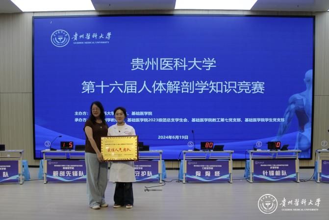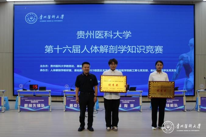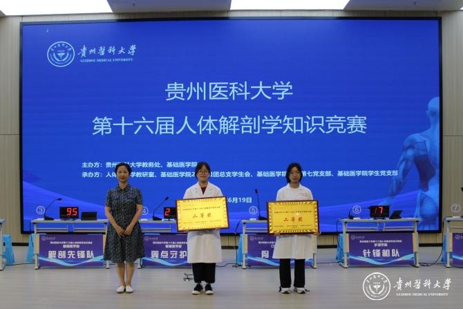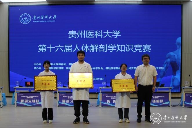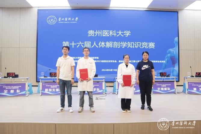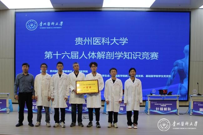6月19日,beat365在云漫湖校区道德讲堂举办beat365唯一官方网站第十六届人体解剖学知识竞赛,教务处处长汪志勇,大健康研究院院长康颖倩,校团委副书记胡洪瑞,儿科学院党委副书记邓欣,护理学院副院长刘志燕以及基础医学院党政班子成员参加。贵州省人民医院医学博士、主任医师杨先腾,公共卫生与健康学院副院长王大朋,人体解剖学教研室全体教师担任评委,师生代表近500人观看比赛。