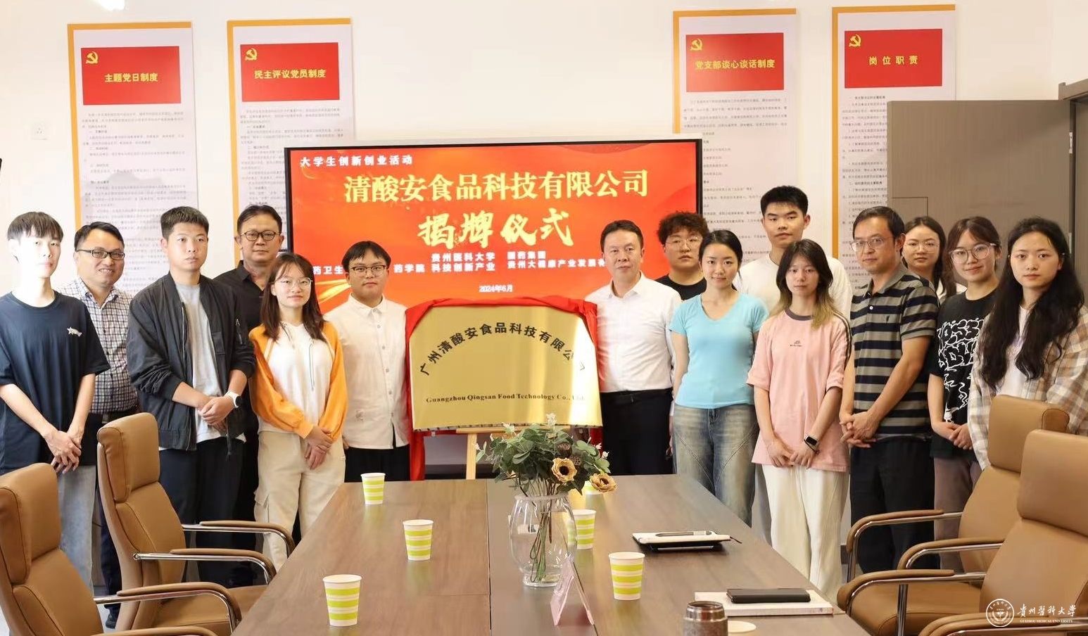 6月24日,广州清酸安食品科技有限公司在beat365医药卫生管理学院正式揭牌。校党委副书记汤磊、科技创新与产业发展处及相关学院师生代表20余人参加揭牌仪式。