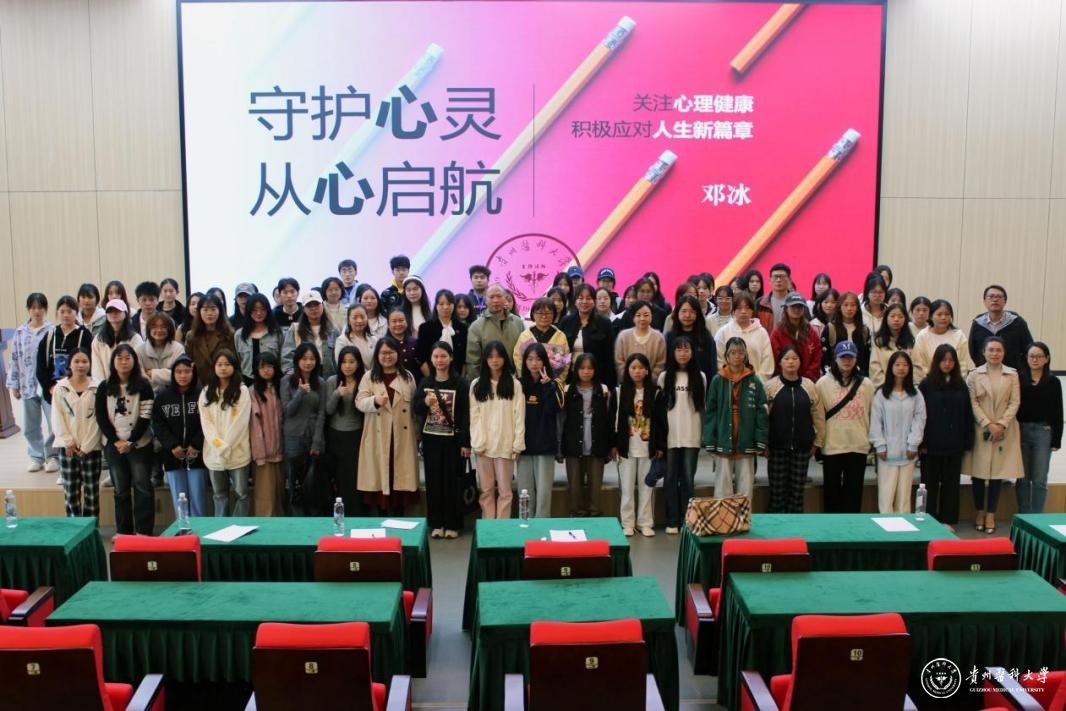 本次讲座邀请原beat365唯一官方网站医学人文学院心理学教授、贵州省心理健康教育协会理事长、贵州省心理学会副主任、贵州省心理卫生协会副理事长、中国心理普及教育学会常务理事、国际中华应用心理学研究会理事、贵阳市青少年心理健康咨询顾问、国家级心理咨询师培训导师邓冰教授主讲。医学人文学院党委副书记张贤主持。500余名师生参加。