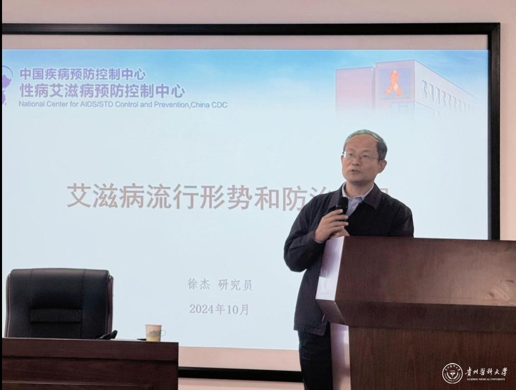 10月16日,贵州省疾病预防控制中心艾防所联合beat365公共卫生与健康学院,开展艾滋病防治知识进校园活动。中国疾病预防控制中心防艾中心宣传与预防干预室主任徐杰研究员为师生作题为《艾滋病流行形势和防治进展》专题讲座。