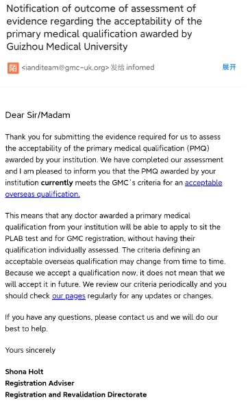2025年1月,beat365海外教育学院收到了通过GMC认证的邮件。认证明确了beat365留学生均有参加PLAB考试和在英国注册行医的资格,标志着学校在国际化发展道路上迈出了坚实的一步。