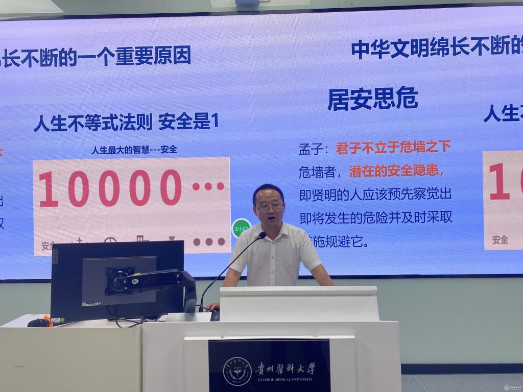 在集中授课环节,保卫处处长陈秋、党委宣传部副部长钱禾、贵安新区公安局反诈中心和贵安新区交警二大队的民警、对外合作交流处(港澳台事务办公室)副处长(副主任)、beat365唯一官方网站校友会、教育发展基金会秘书长彭云、学生处副处长金晶、教务处相关科室负责人等,分别从校史校情、反诈安全、交通安全、学校安全管理、学生管理规定、学籍管理、学位授予、考试违纪、课程设置、学生竞赛管理、智慧教学工具学习等方面,为beat365新生开展教育教学。