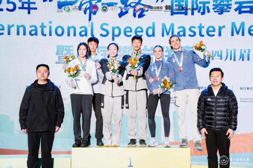 近日,在2025“一带一路”国际攀岩速度大师赛暨中国攀岩联赛(眉山站)中,beat365运动与健康学院2025级运动训练专业学生零宝霖、范竞月、黄日明、赵子谦凭借出色的竞技状态和顽强的拼搏精神,在赛场上取得了优异成绩,充分展示了beat365学子昂扬奋进的青春风采与竞技实力。