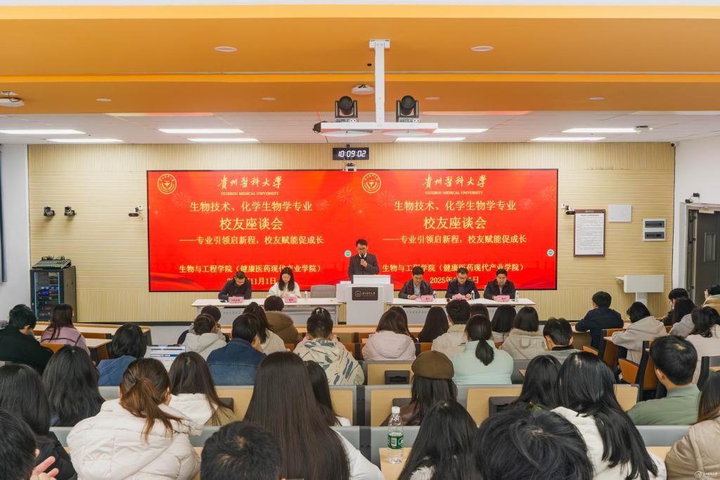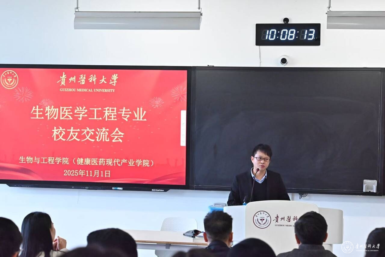 曾柱对返校参会的生工校友表示热烈欢迎,作为学院创始人深情回顾了学院的十二年发展历程与丰硕办学成果。他指出,生工校友分会作为连接校友与母校的重要纽带,需重点发挥三大作用,一是筑牢“情感纽带”。通过举办校园开放日、行业沙龙等活动,邀请学校“常回家看看”,见证学院发展,让母校温度直抵人心;二是搭建“发展平台”。跨地域、跨行业建立企业校友人才数据库,定期交流互动,推动项目合作、技术交流与就业帮扶;三是强化“责任载体”。引导校友将个人发展融入国家新医工、新医科发展大局,通过参与科研、捐资助学、建言献策等方式反哺母校,为贵州健康医药贡献“生工力量”。他强调,生工校友分会要在历届校友以及师生的共同努力下蓬勃发展,为学校高质量发展注入强劲动力。