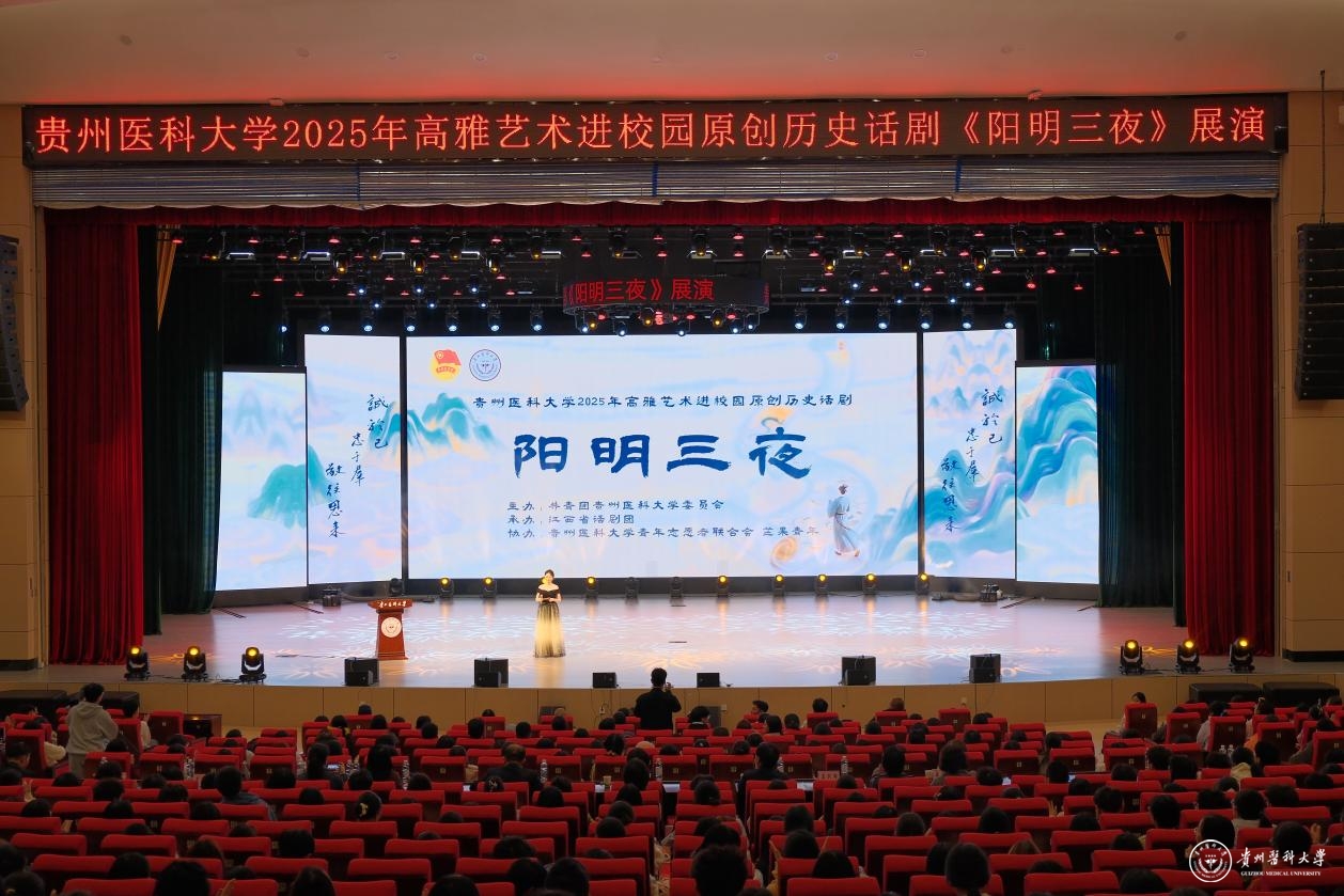 这不仅是一场艺术演出,更是一堂生动的“美育思政课”。 王阳明“知行合一”“致良知”“心学”的思想,与医学教育中强调的“理论与实践相结合”、医者“精诚合一”的职业精神高度契合。活动现场气氛热烈,掌声不断。演出在贵医青年中引发强烈共鸣,一位同学在观后激动地表示:“现场观看给人一种立体的震撼。当王阳明说出‘此心光明’时,我深受触动。这让我对‘致良知’和‘知行合一’有了更深刻的理解,也启示我未来在从医道路上,要始终坚守良知,将所学所知付诸实践。”