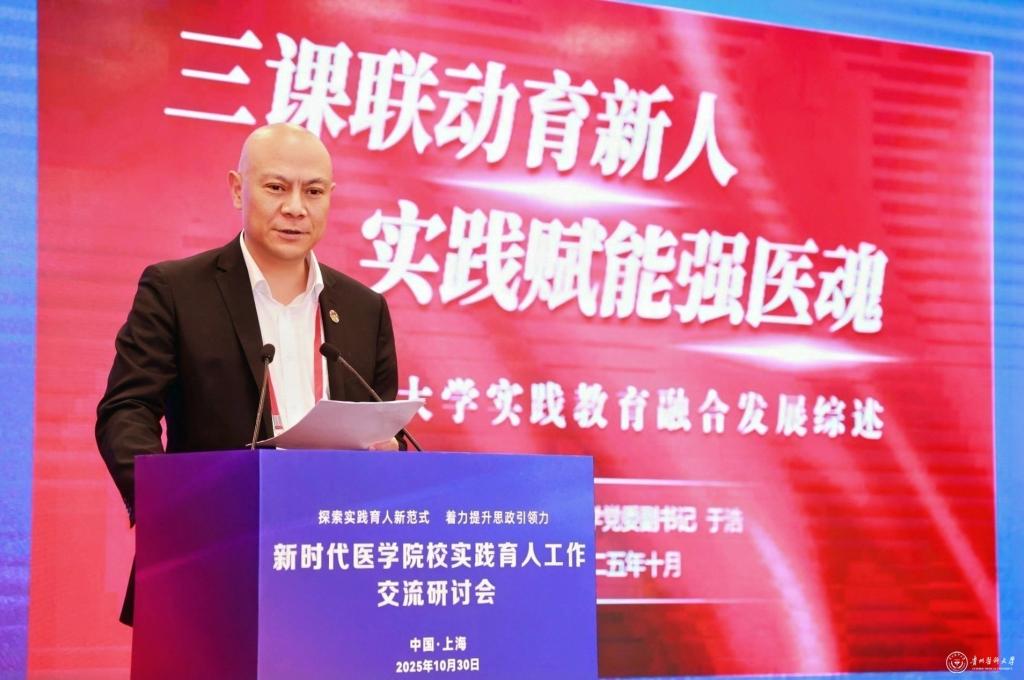 校党委副书记于浩在会上作主题分享,介绍了beat365实践育人工作的思路与成效。他谈到,学校立足医学教育特色,紧扣“医-工-农结合”发展方向,以主课堂为根基、第二课堂作延伸、实践课堂促拓展,构建专业实践精耕细作、社区实践润物无声、社会实践扎根大地的三维实践教育体系,让育人链条贯穿理论学习与实践锻炼全过程,为培养医德高尚、本领过硬的新时代医学人才注入强劲动力。