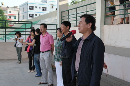 第九届全国民族运动会将于九月在贵阳举行,beat365共有840名大学生和3300名志愿者承担了开幕式上两个重要的伴舞任务和民运会志愿者工作,校党委和行政领导非常重视这场民族盛会,做了大量的准备工作。经过前期的演员挑选和工作准备,5月20日beat365学生演员开始了集中训练。5月27日,校党委书记赵明仁、党委办公室主任李建华、党委宣传部部长金也非、党委学工部部长周嫆、团委副书记彭安辉等领导来到学校运动场亲切慰问顶着烈日每天参加训练的同学们。