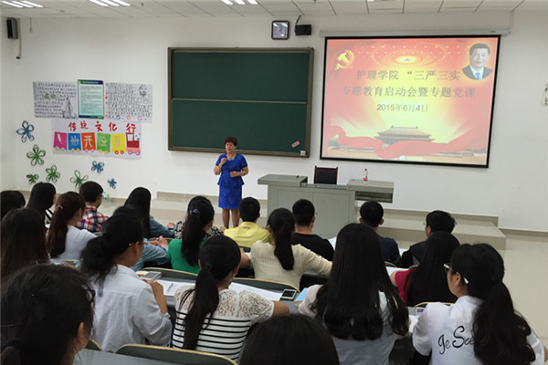 6月4日下午5时,护理学院党委在4106教室召开了“三严三实”专题教育启动会暨专题党课讲授。学院师生党员、入党积极分子150余人参加了会议。
