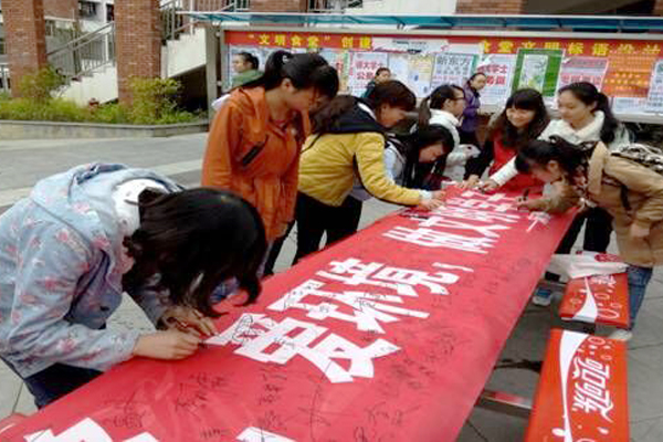 3月29日,在二食堂一楼举行了“学雷锋,爱环境,做文明学子”的签名活动,同学们纷纷表示从此会注重爱护周围环境,从我做起,从小事做起,争做文明学子,将雷锋精神发扬光大。