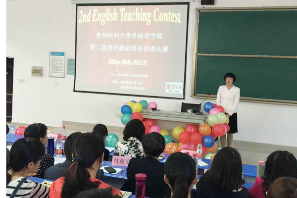 为了提高教学质量,培养青年教师热爱教学、专研教学,尽快适应医科大学的教学要求,同时也是为选拔优秀选手参加5月底举行的第六届“外教社杯”全国高校外语教学大赛贵州省赛区决赛 ,在校工会、教务处、和教师工作处的大力支持下,外国语学院近期在第一教学楼301教室举行了“外国语学院第二届青年教师讲课比赛”的教学活动。此次比赛在外语学院四个教研室的推荐下,共有8名教师参加了比赛。比赛开始前,教师工作处副处长陆德琴、校工会副主席郭晓兰为本次比赛作了开场致辞,肯定了外国语学院第一届青年教师讲课比赛带来的积极影响,高度评价了举办青年教师讲课比赛的意义,并预祝此次比赛圆满成功!