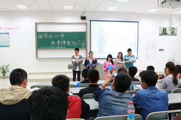 5月5日,食品安全学院在明理楼7202教室组织开展了"国学在心中,书香伴我行"主题班会活动。此次活动由辅导员陈卫娅主持,有幸邀请到省作家学会会员、贵州师范大学团委老师杜维娜作经验分享,全院同学均参与了此次活动。