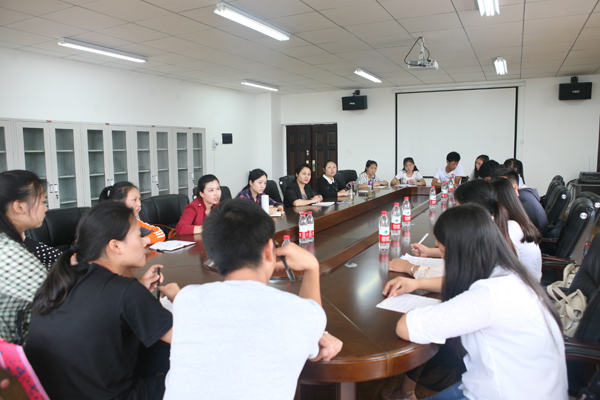 为深入了解学生在学习和生活中遇到的困难,给同学们创造更为便利、舒适的条件,切实为学生做好服务工作,护理学院于6月10日中午在百川楼5楼会议室召开了2015年学生座谈会,参加会议的有院党委副书记杨英、学生科科长曾敏、分团委书记金晶、2013级辅导员毕丽以及各年级学生代表。会议由曾敏老师主持。