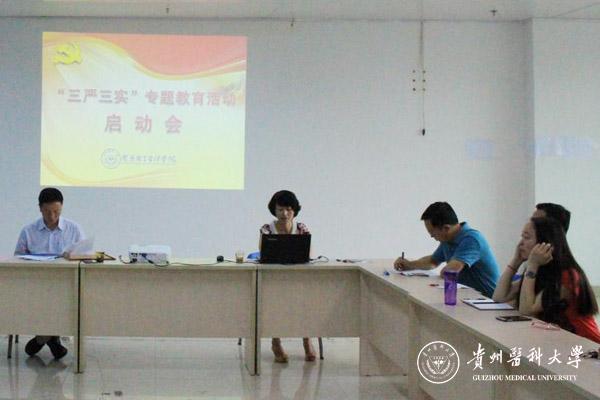 医药卫生管理学院院长汤磊对学院近期的工作进行总结,要求广大党员要切实把思想和行动统一到学校党委要求上来,把开展“三严三实”专题教育作为当前一项重大的政治任务,结合学院教学科研等各项工作,切实增强思想自觉和行动自觉,确保“三严三实”专题教育取得实实在在的成效。