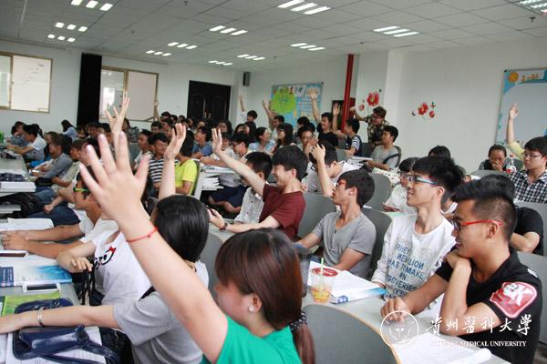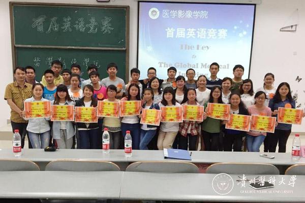 此次比赛的主题为“The Key to The Global Medical Imaging”,涵盖听力、长/短对话、单词&语法、视频、俚语&谚语,分必答题、抢答题、风险题、挑战题、观众互动五个板块。医学影像学院2013、2014级学生共有27人参赛,3人为一组。选手们在答题过程中纷纷发挥聪明才智和团结协作的精神,整个竞赛过程气氛紧张、激烈,经过近两个小时的比拼,来自2013级医学影像学(医学影像技术)专业的罗海心、韦阳、朱丙同学凭借深厚的英语知识积累和默契的配合,勇夺桂冠。
