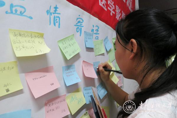 在2015届毕业生举行文明离校签名活动,并在影像学院走廊上开辟“温情寄语”专栏,让同学们在离别之际写下自己对母校的感恩、对师长的敬意、对同窗的情谊以及对学弟学妹的寄语和祝福,并附上了各自的照片。在这些或质朴、或热情、或深沉、或豪迈的语句中,都可以看到毕业生们对母校的真挚情感,并“永远地铭记,我们都是贵医人”。