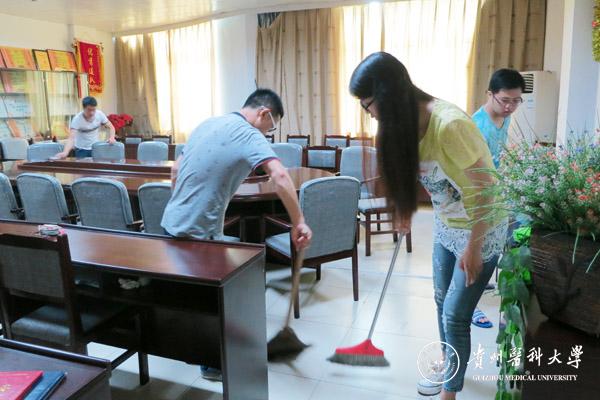 毕业班学生党员在离校前夕来到医学影像学院办公室、会议室、图书室等,擦桌子、扫地、拖地、倒垃圾、整理文件等,同学们用双手和辛勤劳动回报老师的辛勤付出,用实际行动献上对老师的真诚祝福和衷心感谢!