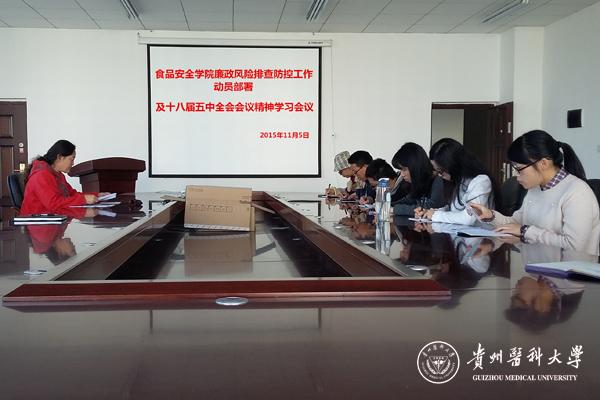 11月6日上午,食品安全学院召开全体教职工大会,传达学习贯彻十八届五中全会精神,同时召开廉政风险排查防控工作动员会,会议由学院党委副书记兰玲主持。