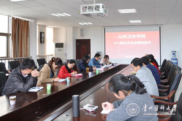 11月13日上午11:00,公共卫生学院党委在博雅楼二楼会议室召集全院党员学习贯彻党的十八届五中全会精神,同时召开廉政风险排查防控工作动员部署会。会议由公共卫生学院办公室张强主持,公共卫生学院常务副院长洪峰、党委副书记杨光红及学院全体教工党员参加。
