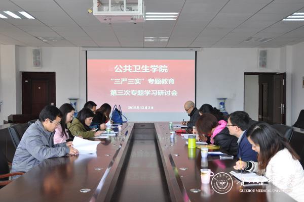 12月3日下午,公共卫生学院在博雅楼二楼会议室召开“三严三实”专题第三次学习研讨会。研讨会由公共卫生学院党委副书记杨光红主持,公共卫生学院常务副院长洪峰及副书记杨光红做专题发言,参会成员参加集体讨论。
