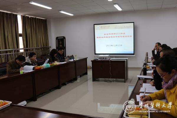 12月15日上午,我部在花溪大学城校区善思楼七楼会议室举办2016年度国家社科基金项目申报专家论证会。我部有幸邀请到了贵州大学人文学院前院长、国务院政府特殊津贴获得者、贵州省“省管专家”、贵州大学学术学科带头人、二级教授陶渝苏老师和贵州大学马克思主义学院副院长郭红军教授为准备申报2016年度国家社科基金项目的老师作选题论证指导工作。