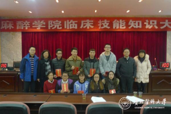 为加强学风建设,提高同学们的学习兴趣,巩固专业临床技能基础知识。2015年12月29日下午,麻醉学院在北校区基础二号楼会议室,举办了麻醉学院第二届临床技能知识竞赛。我院党委书记刘建华、副院长高鸿,各教研室负责人及相关科室负责人出席了此次竞赛。