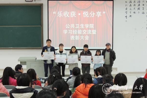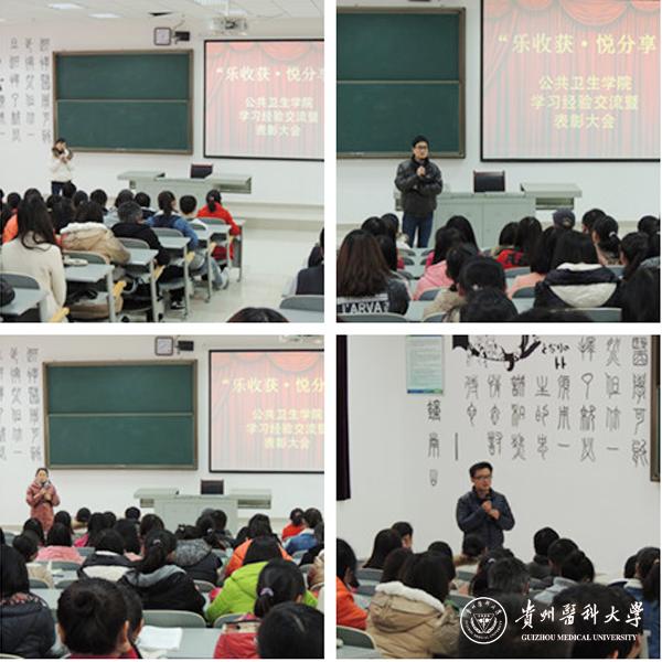 2015年12月31日,公共卫生学院师生集聚一堂,在4505教室举办了一场以“乐收获·悦分享”为主题的经验交流暨表彰大会。此次活动旨在进一步促进广大公卫学子对本专业的了解及热爱,提高同学们的学习兴趣及专业关注点,激发他们参与各类专业技能大赛的热情,并希望通过此次经验交流会与低年级同学们分享学习和竞赛的心得体会。