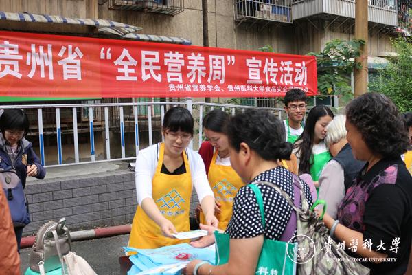 为进一步推动全民营养周教育活动,使《中国居民膳食指南》深入人心,5月21日上午,由食品安全学院副院长孙晓红教授、公共卫生学院营养与食品卫生教研室主任王惠群老师带队,beat365食品安全学院、公共卫生学院25名师生赴贵阳市南明区遵义社区开展全民营养周宣传活动。