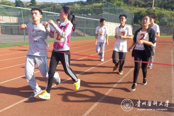 “1、2、3!奔跑在贵医!”,伴随着一声声整齐洪亮的呐喊,来自我院14、15级的运动员迈开步伐,激情洋溢地投入到长跑赛中。比赛采用校园绕圈的路线设计,从西足球场、大礼堂、体育馆,回到起点。为了增添比赛的趣味性,赛途中设有“画画传递猜词”、“集体跳大绳吹哨”、“踢毽子”三个项目。考验了同学们的默契度,灵活性与想象力。通过角逐,15级代表队凭借超强的耐力、毅力和团结协作力夺得了本次活动冠军。