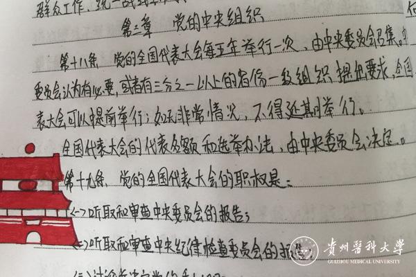手抄党章通过“日抄百字、周学一章、月记一文”进行深入系统的学习,掀起了“手抄党章100天”热潮。从5月20日开始,党员同志们积极响应,并通过各种创意装饰自己的作品。有将党章书写成艺术品的,有将党章配上相关插图的,有在党章旁边记录心得体会的,还有手抄英文版党章的。