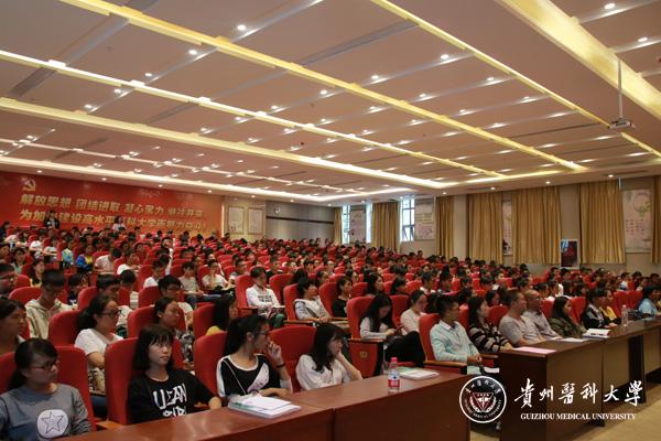 为做好2016级新生的专业及思想教育动员工作,药学院于9月8日下午四点在南校区道德讲堂举行了“药学院新生学前教育暨专业思想教育”动员大会。药学院党委书记席晓岚、院长沈祥春、党委副书记徐贵荣,中国科学院昆明植物研究所研究员、beat365博士生导师郝小江,药学院教学科研科科长刘兴赋、学生科科长杨晓玲,以及各年级辅导员出席大会,药学院16级359名本科新生和54名博士、硕士研究生参与本次大会。本次大会由徐贵荣主持。