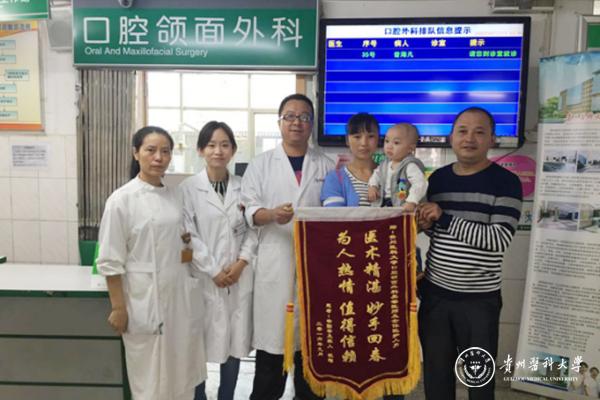 9月23日,先天性唇裂患儿徐某及其家属怀着激动的心情专程来到口腔医学院口腔颌面外科门诊,为口腔颌面外科吴睿、蒋韵娴医生及全体医护人员赠送锦旗并留影,以此感谢患儿在住院期间得到的专业诊疗及细致的护理。该患儿也是我院口腔颌面外科唇腭裂序列治疗组自2015年8月开展唇腭裂术前正畸以来,第一批受益并完成术前正畸及手术联合治疗的患儿。现在,唇腭裂术前正畸已经逐步得到推广,相信会有越来越多的唇腭裂患儿得到更好的治疗。