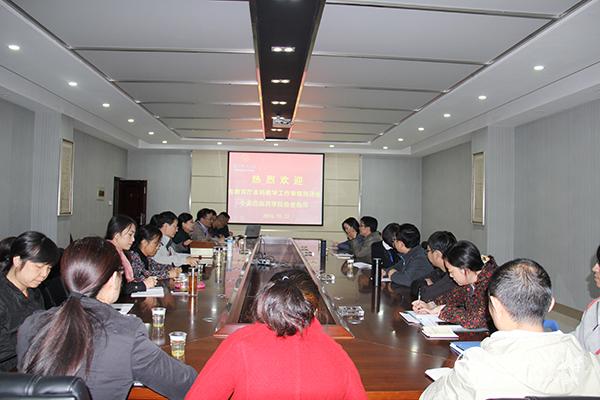 10月12日下午贵阳中医学院教务处处长田唯毅专家到药学院进行本科教学审核预评估工作检查,与药学院党委书记席晓岚、院长沈祥春、党委副书记徐贵荣、各教研室主任、各部门负责人举行座谈会。会议就教学环节、课程设置、专业设置、师资建设等方面进行深入的探讨。会后走访了教学科研管理科、中药学教研室,查阅教学管理档案,询问专业课程设置情况,然后和中药学专业、药学专业负责人进行了深度谈话。