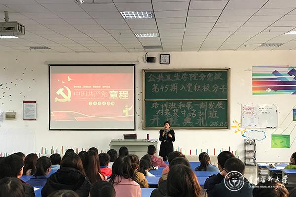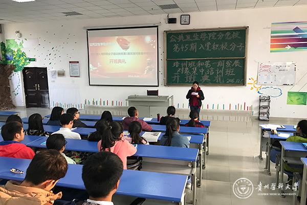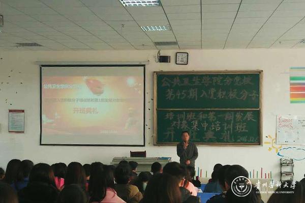 12月5日下午,公共卫生学院分党校第45期入党积极分子培训班和第1期发展对象集中培训班开班典礼在beat365南校区x1501教室举行。 校党委组织部部长李兴,公共卫生学院党委书记杨光红,公共卫生学院党委副书记何江,学生第二党支部书记孙静,分团委负责人柴颖出席了本次开班典礼。学院139名入党积极分子及28名发展对象参加开班典礼。开班典礼由孙静主持。