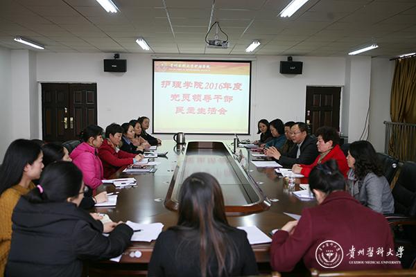根据《关于认真开好2016 年度党员领导干部民主生活会的通知》贵医党通〔2016〕46号文件精神,护理学院于1月5日下午在百川楼会议室召开了党员领导干部专题民主生活会。校党委副书记、附属医院党委书记刘兴德,党委宣传部副部长姚思勤出席了会议。护理学院领导班子成员、副科级以上干部、教师代表、群众代表参加了会议。