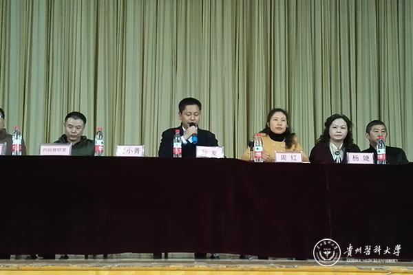 孙发致词欢迎2014级全体同学进入临床新学期的学习,介绍了临床医学院的历史、现状及附属医院情况,阐述了beat365“医教联合”的教育模式,并对同学们提出了殷切的期望。他希望全体老师利用学校及医院的资源为同学们创造良好的学习环境和生活环境,在教学中着力培养学生的自学能力和自我管理能力,提升临床教学水平与质量。见面会上,各教研室的老师代表对各门课程的教学进程、学习方法、相关要求等进行了详细的介绍。