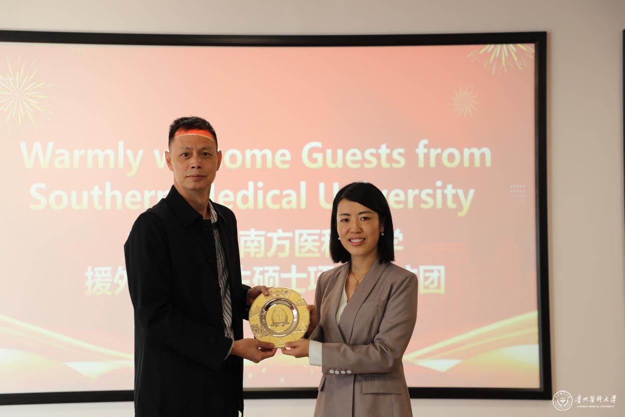 交流会上,胡晓霞对参访团的到来表示欢迎。她表示,非常感谢南方医科大学提供的这次机会,让更多国际友人走进贵医,了解贵医。希望通过这次活动,加强两校在人才培养、教学科研和国际交流等方面的深度合作,创造条件让贵医学子们与来自世界不同国家和地区的优秀学员共同学习和成长,携手为培养更多优秀的国际化应用型公共卫生人才作出贡献。