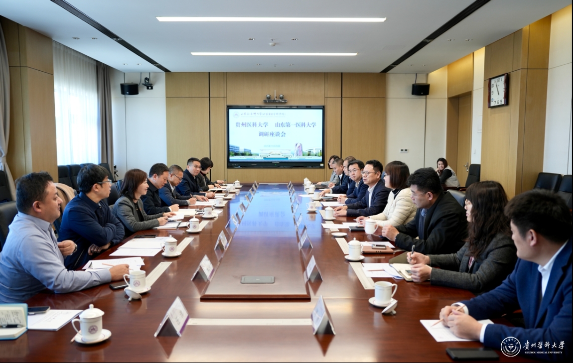 11月25日,校党委书记汤磊、副校长潘卫东率学校相关职能部门负责人赴山东第一医科大学(山东省医学科学院)开展交流。山东第一医科大学党委书记刘思金在医学科技创新中心会见汤磊一行。山东第一医科大学党委委员、副校(院)长张占军出席座谈会,两校相关职能部门负责人共同参加。