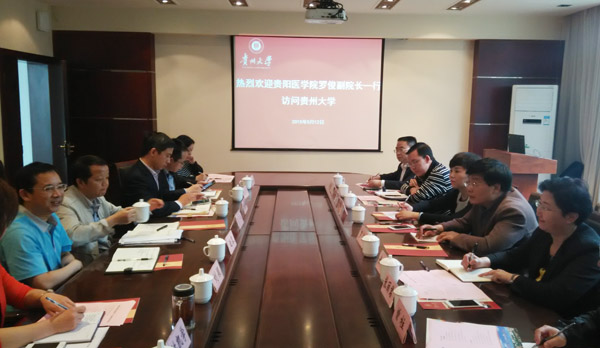5月12日上午,为加快学校大健康学院建设,了解贵州大学大数据学院和大数据产业发展应用研究院建设、发展的丰富经验,副院长罗俊、黄亚励率领学校两办主任和有关职能部门负责人到贵州大学进行交流调研。