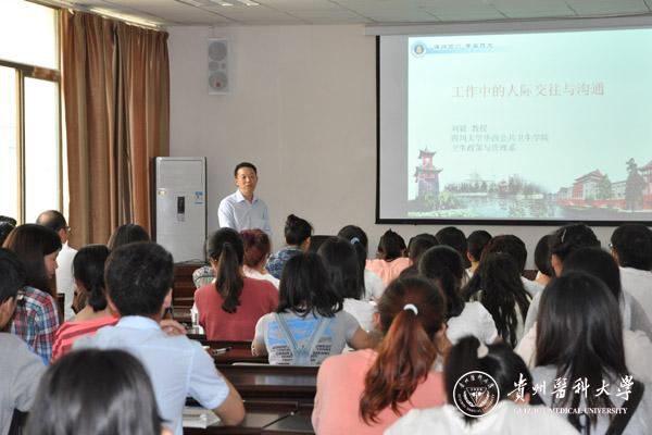 刘毅教授以“人际交往的角色”入题,讲述了人际关系的重要性及其对个人的影响,并用风趣的语言、生动的案例全面诠释了有效交往与沟通中的要点、方法和技巧,其精辟的观点、幽默的讲解赢得了师生们的阵阵掌声。