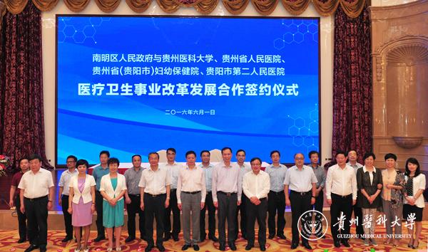 省卫生计生委副主任张光奇作重要讲话,他强调南明区人民政府与贵州最好的医科大学建立战略合作关系,充分利用各自的资源和优势条件开展合作,达成共赢发展合作模式,特别是在医疗卫生资源共享、信息互通、分级诊疗、人才培养等方面的合作必将促进南明区医疗卫生事业改革发展,为进一步提升医疗卫生为民服务能力提供坚实基础和保障,为贵阳市的地方经济发展和保障居民健康做出更大贡献。