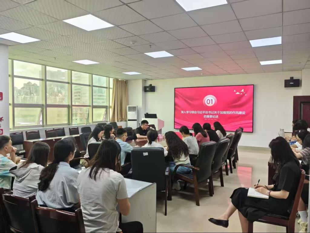 7月4日,校党委委员、省纪委省监委派驻校纪检监察组组长杨智到临床医学院,以“深入学习贯彻习近平总书记关于加强党的作风建设重要论述推动作风建设向纵深发展”为主题,为教工支部全体党员讲授专题党课。学院教工党支部全体党员参加学习。