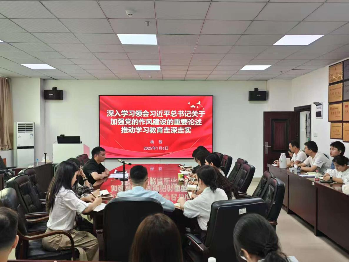 杨智从“深入学习领会习近平总书记关于加强党的作风建设的重要论述”“准确把握违反中央八项规定精神行为的表现形式”“高标准高质量完成深入贯彻中央八项规定精神学习教育各项任务”“以强有力的监督执纪推动作风建设走深走实”四个方面深入浅出为全体党员解读习近平总书记关于加强党的作风建设的重要论述的精神实质。要求在座党员要重点把握“九个”深刻领会,学深细悟习近平总书记关于加强党的作风建设重要论述中的辩证思维、掌握“九个”深刻领会中的辩证关系,结合自身工作实际,进一步深化对新时代加强党的作风建设的一系列重大理论和实践问题的理性认识,增强作风修养的自觉性、主动性。 随后,通过剖析违反中央八项规定精神的典型案例,生动还原了部分党员干部在七个重点领域的失范行为。前车之鉴,后事之师,全体党员干部必须以案为鉴、警钟长鸣,切实筑牢拒腐防变的思想防线,精准把握违规违纪行为特征,将深入贯彻中央八项规定精神学习教育抓在经常、严在日常,以钉钉子精神纠治“四风”,持续巩固作风建设成效。