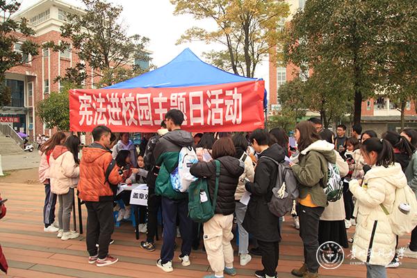 12月4日,由党委宣传部主办,校报通讯社承办的“宪法进校园主题日”活动在一食堂小广场前举行。
