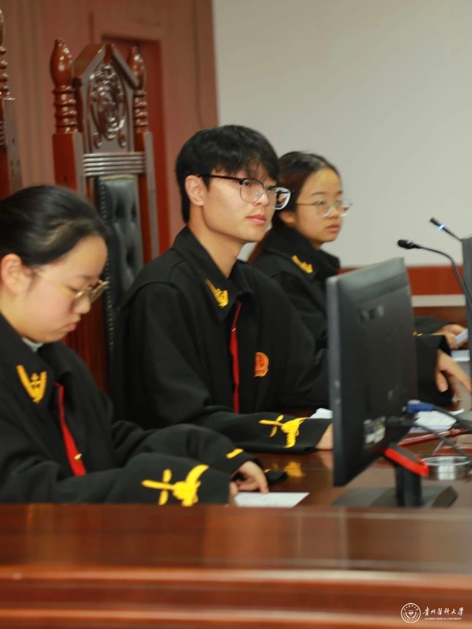 在法院干警的引导下,同学们走进了南明区人民法院刑事审判庭,零距离旁听刑事审判案件。认真严肃地观摩庭审,“零距离”感受法律威严。