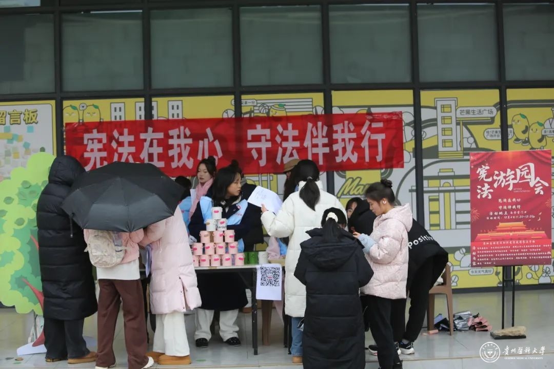 现场志愿者向来往师生派发《中华人民共和国宪法》,讲解“12·4” 国家宪法日的由来和《中华人民共和国宪法》的相关知识。通过“宪法知识问答”“法条我知道”等小游戏,让同学们积极投身到宪法知识的学习中。